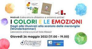 I COLORI e le EMOZIONI: dagli albi illustrati alla scatola delle meraviglie (Laboratorio didattico e artistico online) Professional Academy Scuola 18 Mag 2022Il WebLab è un laboratorio artistico online, accreditato MIUR (4 ore) e rivolto a docenti, educatori e insegnanti, affinché supportino i bambini nel riconoscimento delle proprie emozioni e a raccontarsi attraverso le immagini, i colori e le parole, partendo dagli albi illustrati di Anna Llenas. ULTIMI GIORNI PER ISCRIVERSI Quota d’iscrizione individuale: € 35,00 (IVA esente) […]+ Continua