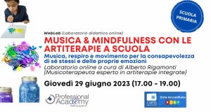 MUSICA e MINDFULNESS con le artiterapie a scuola: come favorire la consapevolezza del proprio corpo e delle emozioni (Laboratorio artistico online) Professional Academy Scuola 31 Mag 2023Il WebLab è un laboratorio artistico online, accreditato MIUR (4 ore) e rivolto a docenti, educatori e insegnanti, per supportarli nella progettazione di attività pratiche che consentano agli alunni di acquisire maggiore consapevolezza del proprio corpo e di come questo possa comunicare, anche senza parole, attraverso il ritmo e la musica, supportati dalla metodologia della […]+ Continua