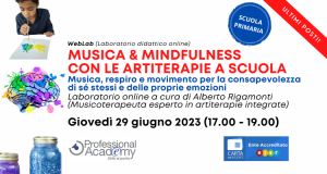 (ULTIMI 10 POSTI) MUSICA e MINDFULNESS a scuola: progettare attività didattiche con le artiterapie (Laboratorio artistico online) Professional Academy Scuola 15 Giu 2023Il WebLab è un laboratorio artistico online, accreditato MIUR (4 ore) e rivolto a docenti, educatori e insegnanti, per supportarli nella progettazione di attività pratiche che consentano agli alunni di acquisire maggiore consapevolezza del proprio corpo e di come questo possa comunicare, anche senza parole, attraverso il ritmo e la musica, supportati dalla metodologia della […]+ Continua