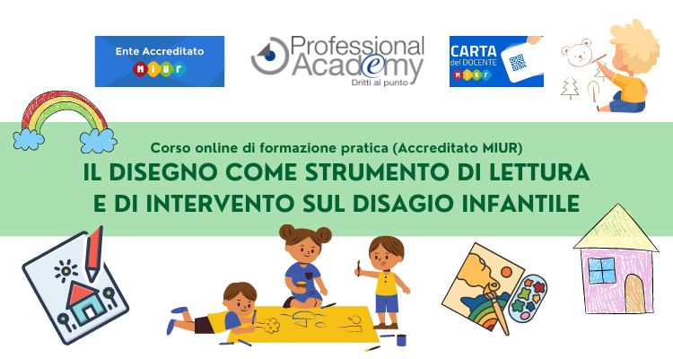 Corso online di formazione pratica suddiviso in 4 lezioni (videofocus, raccolta analisi dei disegni, test di autovalutazione intermedia), accreditato dal MIUR e rivolto a Docenti ed Educatori della Scuola dell’Infanzia e della Scuola Primaria.