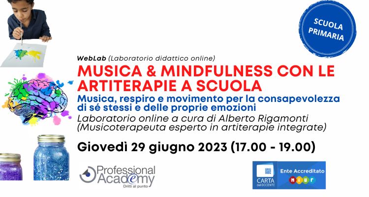 MUSICA e MINDFULNESS con le artiterapie a scuola: come favorire la consapevolezza del proprio corpo e delle emozioni (Laboratorio artistico online) - Professional Academy