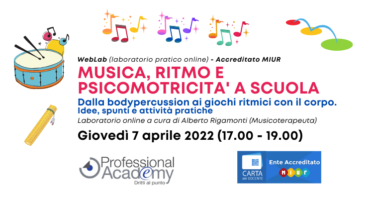 MUSICA, RITMO E PSICOMOTRICITA' A SCUOLA (Laboratorio artistico online) - Professional Academy